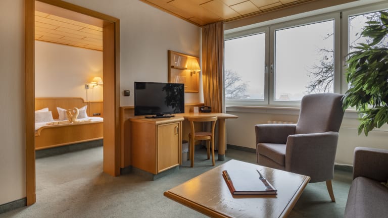 Alle 43 Zimmer sind hell & ruhig gelegen. Sie verfügen teilweise über einen Ausblick auf Heringsdorf oder über einen Balkon mit Blick ins Grüne. Die Zimmerpreise beinhalten die Übernachtung im Einzel - oder Doppelzimmer, ein reichhaltiges Frühstücksbuffet, WLAN, ein Parkplatz direkt am Haus, die Nutzung von Sauna & Whirlpool, Fitnessraum sowie den Shuttleservice vom Bahnhof Heringsdorf. Urlaub für Familien... Unsere Familienzimmer bieten durch ihren getrennten Wohn- und Schlafraum besonders für bis zu 4 Personen eine ideale Lösung. Aktiv die Natur erleben oder bei einem Sonnenbad im Strandkorb − gönnen Sie sich einige Tage Auszeit mit einem unserer vielfältigen Arrangements! Diese beinhalten einen persönlichen Strandkorb, ein Kinderland am Strand, Wassersport u.v.m.