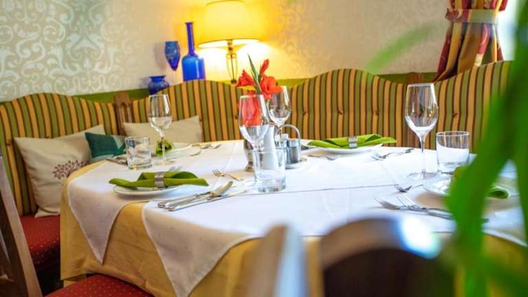 Im Restaurant des Landhotels können Sie österreichische und internationale Küche genießen. Das Hotel bietet auch die Möglichkeit der Halbpension auf Anfrage. Für einen besonderen Genuss können Sie eine Schnapps-Verkostung gegen Aufpreis buchen.
