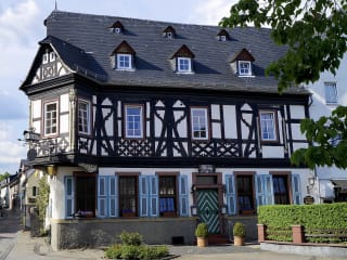 Betritt man das Haus so fällt schon die liebevoll hergerichtete Holzvertäfelte Gaststube auf mit dem typischen Charme eines über 500 Jahren alten Fachwerk Gebäudes. Sie bietet für insgesamt 60 Personen Platz. Die Liebe zum Detail setzt sich in allem fort, sei es bei der Auswahl der Weine und frisch gezapften Biere oder bei der Gastfreundschaft. Ihr Küchenchef Michael Georg stellt die Speisekarte saisonal zusammen, und gewährleistet damit dass ausschließlich Produkten von bester Qualität, Frische und Reife serviert werden.