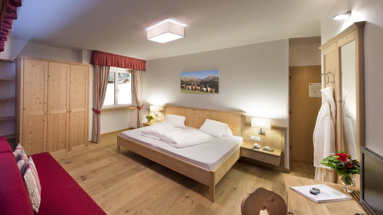 Luftige Turm- und großzügige Familiensuiten neben komfortablen Doppelzimmern. Alle Zimmer verfügen über Dusche oder Bad, und Balkon und sind mit Flatscreens mit SAT-TV, Radio, Telefon, Wi-Fi, Zimmersafe, Haarföhn und teilw.mit Frigo ausgestattet.