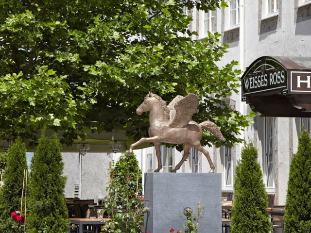 Das Hotel Weisses Ross ist ein familiengeführtes Traditionshaus in einem denkmalgeschützten Gebäude aus dem 15. Jahrhundert. Das Hotel wurde 2014 komplett renoviert und bietet eine Kombination aus historischem Charme und modernem Ambiente. Zu den Einrichtungen gehören ein elegantes Restaurant mit Gewölbedecke, eine beliebte bayerische Bierstube sowie eine begrünte Aussenterrasse. Die Rezeption ist täglich rund um die Uhr besetzt, und das Hotel bietet kostenfreies WLAN in allen Bereichen.