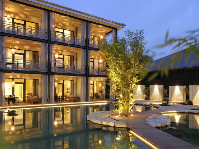 In Waging am See zwischen Chiemsee und Salzburg. Das Hotel liegt nur wenige Meter vom Waginger See entfernt.