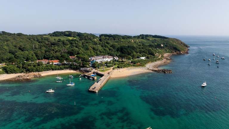Das Hotel befindet sich auf der wunderschönen Kanalinsel Herm, die oft mit Karibikstränden verglichen wird. Herm ist eine kleine Insel mit traumhaften, weissen Sandstränden und türkisfarbenem Meer. Sie ist bequem erreichbar durch direkte Flüge von den meisten Flughäfen im Vereinigten Königreich oder mit der Fähre von Poole, Portsmouth oder Frankreich, was sie zu einem perfekten Rückzugsort macht.
