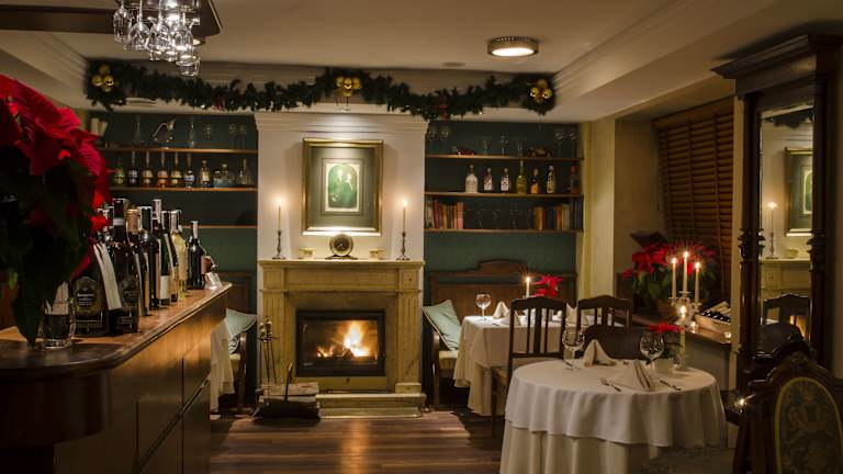 Im stilvollen Hotelrestaurant können Sie am Morgen ein abwechslungsreiches Frühstücksbuffet genießen. Das Restaurant bietet auch die Möglichkeit, vor dem Kamin zu speisen und eine entspannte Atmosphäre zu genießen.