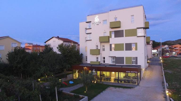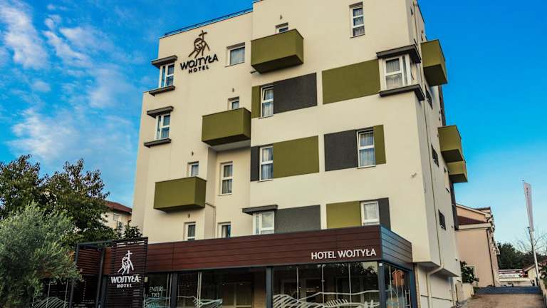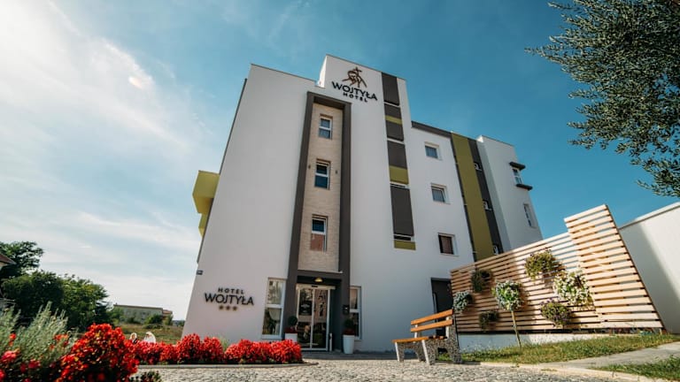 Das Hotel Wojtyla bietet Übernachtungsmöglichkeiten in einem einladenden Garten und verfügt über einen kostenlosen Privatparkplatz, eine Gemeinschaftslounge sowie eine Terrasse. Zudem ist das Hotel mit einem Restaurant ausgestattet und bietet klimatisierte Zimmer mit kostenlosem WLAN und einem eigenen Badezimmer.