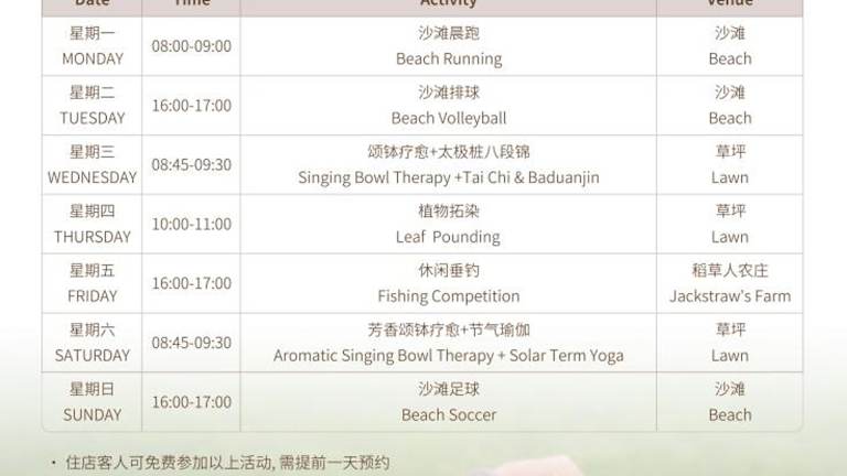 Das Hotel befindet sich in der schönen Hotel- und Resortgegend von Yalong Bay, nur etwa 2 Minuten mit dem Velo vom Yalong Bay Platz entfernt. Das Zentrum von Sanya erreicht man nach ca. 20 km. Der internationale Flughafen Sanya Phoenix ist in etwa 30 Minuten erreichbar. In der Umgebung gibt es einen Sandstrand, jedoch sind Liegen und Sonnenschirme gegen Gebühr erhältlich.