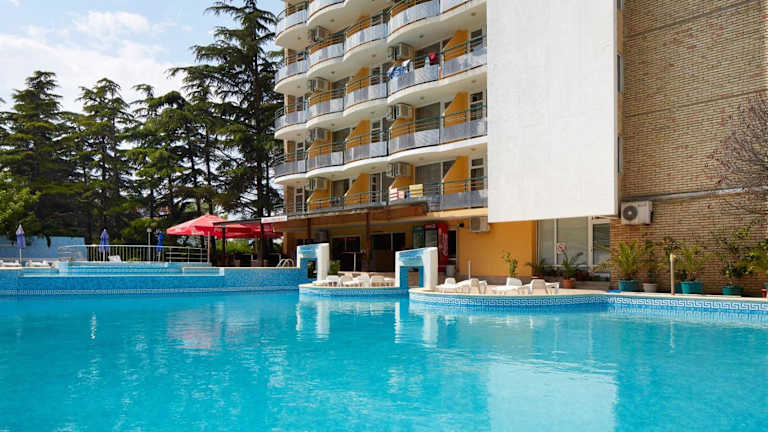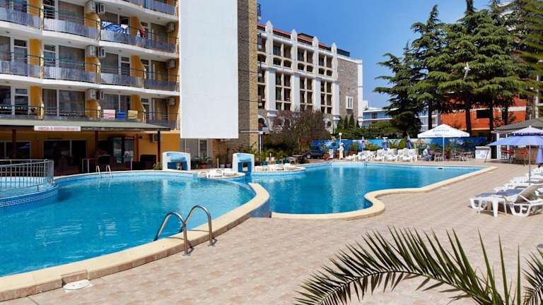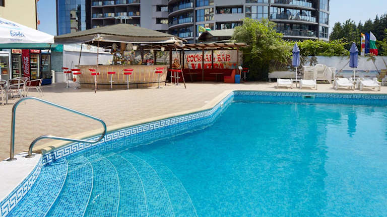 Das Hotel Yantra befindet sich in Sonnenstrand, nur 100 Meter vom Strand entfernt. In der Nähe befindet sich die historische Stadt Nessebar, die in zehn Minuten mit dem Auto erreichbar ist. Der Aquapark im nordwestlichen Teil von Sonnenstrand ist ebenfalls in fünf Minuten mit dem Auto zu erreichen, während Sveti Vlas in 15 Minuten erreichbar ist. Der Flughafen Burgas ist in einer halben Stunde Fahrzeit erreichbar.