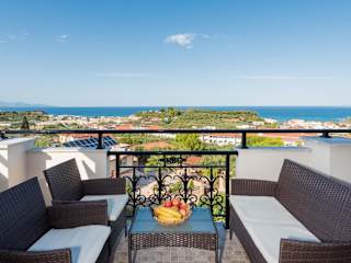 Die Wohneinheiten sind mit einem Doppelbett sowie einem Sofabett ausgestattet. Zustellbetten können auf Anfrage bereitgestellt werden. Eine gut ausgestattete Kochnische steht zur Verfügung, die mit einem Kühlschrank, einer Herdplatte, einem Toaster und einem Wasserkocher ausgestattet ist. Jedes Zimmer bietet einen Balkon oder eine Terrasse mit Blick auf die Stadt sowie ein Badezimmer mit Dusche, Haartrockner, Kosmetikartikeln und einer Auswahl an Handtüchern. Ein TV-Gerät mit Satelliten-/Kabelempfang sowie Wifi sind ebenfalls vorhanden.