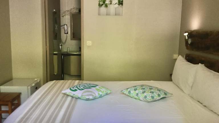 Die Zimmer sind in natürlichen Farben dekoriert und bieten Ausblick auf den Garten, den Pool oder den Berg. Jedes Zimmer ist klimatisiert und verfügt über einen Flachbild-Sat-TV. Einige Zimmer bieten zudem eine Terrasse oder einen Balkon. Schallisolierte Zimmer stehen ebenfalls zur Verfügung.