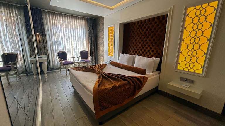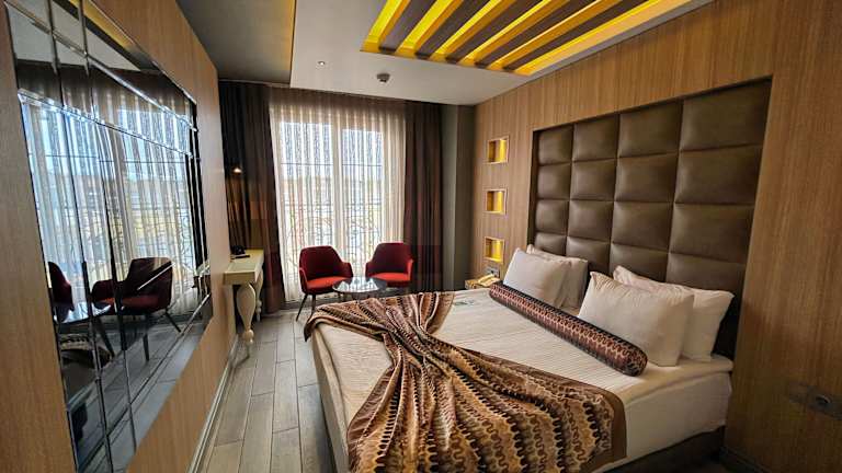 Ein als Buffet angebotenes, kontinentales oder vegetarisches Frühstück wird in der Unterkunft serviert. Zudem gibt es ein Restaurant, das türkische Küche anbietet, und auf Anfrage auch vegetarische und halal-zubereitete Optionen.