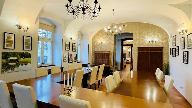 Im Hotel Zamek Berchtold wird ein Frühstück angeboten, welches in Form eines Buffets oder als kontinentales Frühstück serviert wird. Es gibt auch eine Snackbar und die Möglichkeit, spezielle Ernährungsbedürfnisse auf Anfrage zu berücksichtigen. Bei Bedarf können Snacks wie Znüni oder Zvieri zubereitet werden.