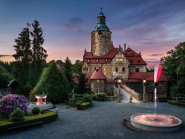Das Hotel Zamek Czocha liegt in einer malerischen und abgelegenen Gegend nahe der Stadt Leśna, auf dem Gipfel eines Granithügels mit Blick auf den Leśniańskie-See.