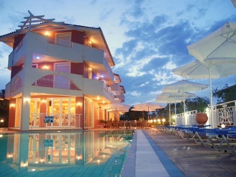Verbringen Sie Ihren Urlaub im Pantheon Hotel auf der Insel Zakynthos und genießen Sie die entspannte Atmosphäre inmitten der grünen Natur. Das Hotel bietet komfortable Zimmer mit Balkon und Blick auf den Pool, den Garten oder das Ionische Meer. Entspannen Sie am Pool oder erkunden Sie die Umgebung mit dem Fahrrad oder dem Auto, das Sie im Hotel mieten können. Das Restaurant serviert köstliche griechische Gerichte und die Hotelbar lädt zum Verweilen ein. Das freundliche Personal steht Ihnen jederzeit zur Verfügung und hilft Ihnen gerne bei der Organisation von Ausflügen.