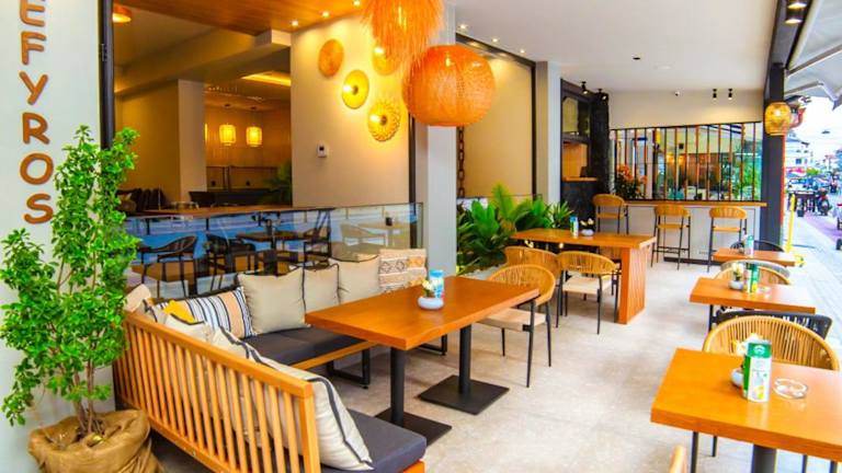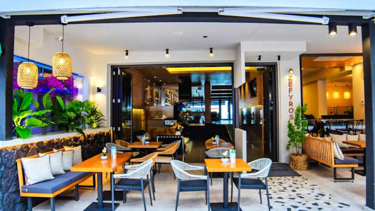 Im Hotel Zefyros können Sie jeden Morgen ein kontinentales Frühstück im Frühstücksraum genießen. Die hoteleigene Strandbar bietet Ihnen eine große Auswahl an Getränken, damit Sie Ihren Tag am Strand optimal genießen können. In der näheren Umgebung finden Sie auch eine Vielzahl von Tavernen und Bars, in denen Sie lokale Spezialitäten und erfrischende Getränke probieren können.