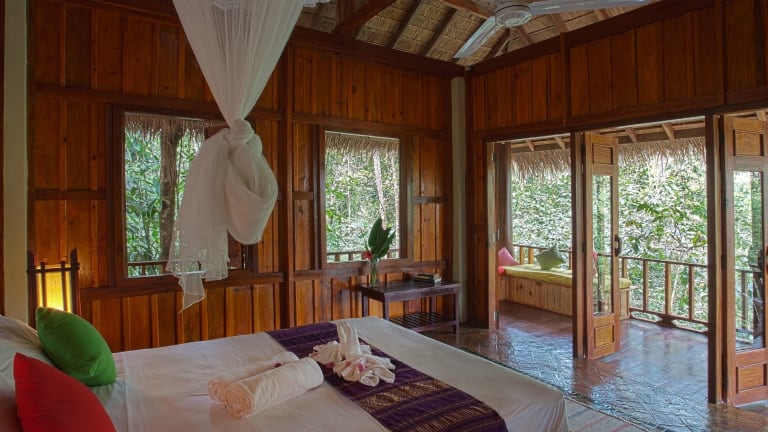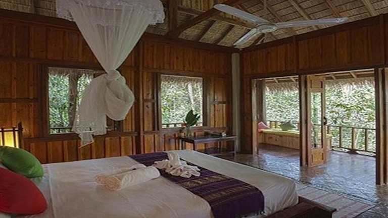 Das Resort befindet sich rund 13 km von Luang Prabang entfernt und liegt am Ufer des Flusses Namkhan, umgeben von der Natur von Laos. Der Flughafen Luang Prabang befindet sich etwa 13 km von der Unterkunft entfernt.