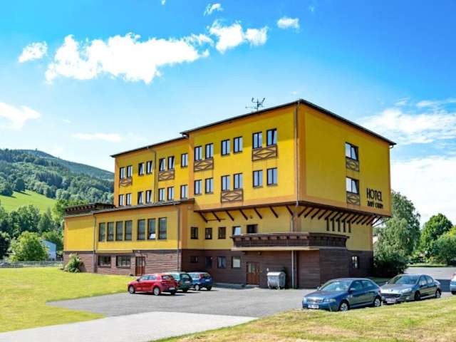 Verbringen Sie einen entspannten Aufenthalt im Hotel Zlatý Chlum, nur 3 Fahrminuten vom Zentrum von Jeseník entfernt. Das Hotel bietet funktionale Zimmer, ein eigenes Restaurant, eine Sauna, einen Fitnessraum und eine Weinbar. Nutzen Sie das kostenfreie WLAN und den kostenlosen Privatparkplatz. Die Skipiste Miroslav erreichen Sie in nur 10 km Entfernung. Der Bahnhof Česká Ves und die Bushaltestelle Česká Ves sind jeweils in nur 4 Gehminuten erreichbar.