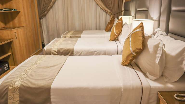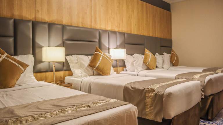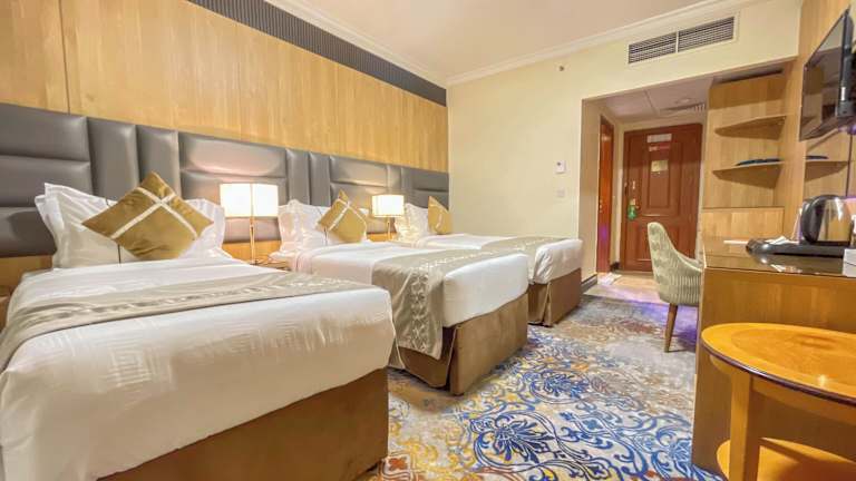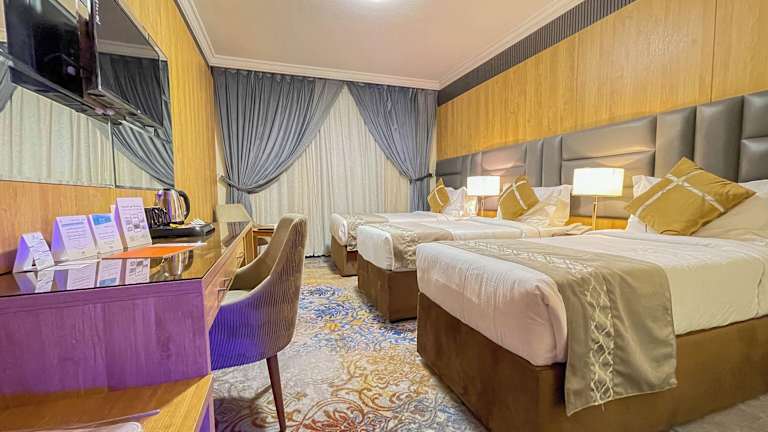 Das Hotel liegt im zentralen nördlichen Teil von Medina, weniger als 180 m von der Al-Masjid al-Nabawi Moschee entfernt. Diese günstige Lage ermöglicht es Ihnen, die Moschee bequem zu Fuß zu erreichen und das religiöse Zentrum der Stadt hautnah zu erleben. In der Umgebung gibt es auch eine Vielzahl von lokalen Cafés und Restaurants, die Sie innerhalb weniger Minuten mit dem Auto erreichen können. Der internationale Flughafen Prinz Mohammad Bin Abdulaziz ist gut 13 km entfernt und das Stadtzentrum von Medina ist knapp 4 km entfernt.