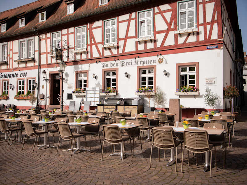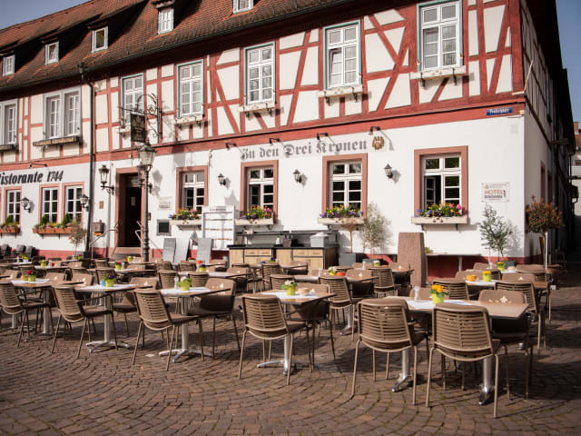 Das Hotel Zu den Drei Kronen befindet sich in Seligenstadt, neben dem Klostergarten, nahe des Mains und der Einhard-Basilika. Die Innenstadt mit ihren traditionellen Gebäuden und dem hübschen Marktplatz ist ebenfalls bequem zu Fuss erreichbar.