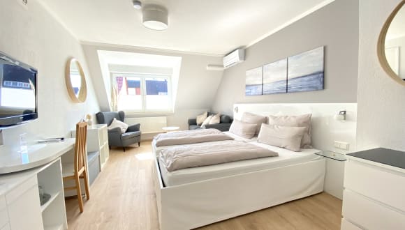 Unsere Zimmer Modern.Komfortabel.gut ausgestattet. und vor allem gemütlich. Das Hotel zur Bever wurde 1999 auf das bestehende Restaurant, den "Gasthof zur Bever”, gebaut und verfügt über einen sehr guten baulichen Standard. Das gesamte Hotel verfügt über 14 Zimmer und eine Ferienwohnung mit bis zu 35 Betten. Alle Zimmer befinden sich im 1. und 2. Obergeschoß des Gebäudes und sind nur über eine Treppe erreichbar. Im Frühjahr 2022 wurden das gesamte Hotel frisch renoviert und stilvoll eingerichtet. Im Frühjahr 2019 wurden alle vier Komfort - Doppelzimmer mit neuen Kingsize - Boxspringbetten der Firma COCO - MAT bestückt. Im Frühjahr 2021 wurden insgesamt neun Zimmer (8 Standard und 1 Komfort - Doppelzimmer) mit Klimaanlagen ausgestattet.