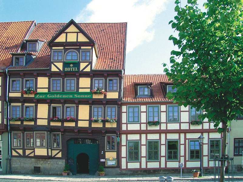 Unser Hotel befindet sich zentral am Mathildenbrunnen. Es ist das höchste Haus am Ort mit Blick nach Süden, eben zur "Sonne". Alle Sehenswürdigkeiten von Quedlinburg sind zu Fuß zu bewältigen.