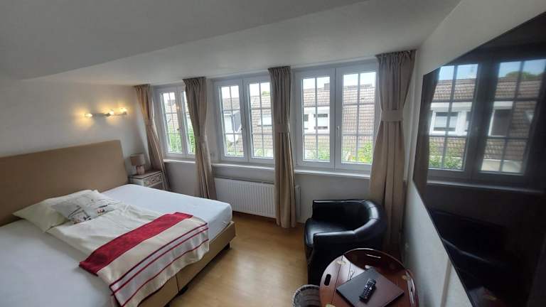 Die Zimmer im Hotel zur Linde verfügen über einen Sitzbereich, einen TV und ein eigenes Bad. Sie sind mit Parkett und Möbeln im englischen Stil ausgestattet und bieten viel Tageslicht.