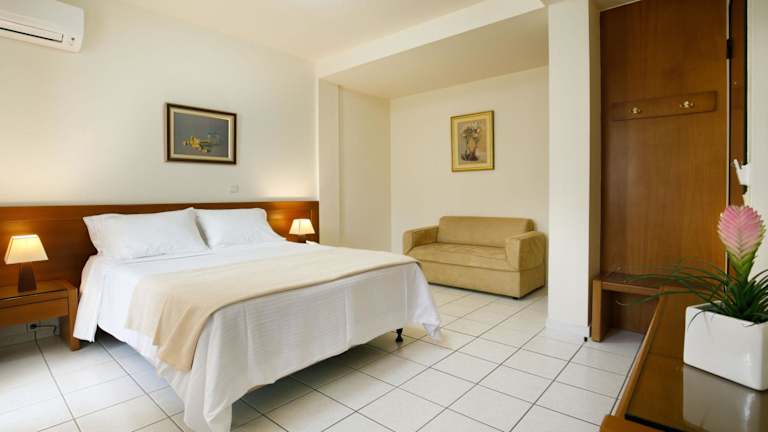 Die Zimmer sind mit Klimaanlage, einem Schreibtisch, Flachbild-TV, eigenem Badezimmer, Bettwäsche, Handtüchern sowie einem Balkon mit Stadtblick ausgestattet. Zudem verfügen die Gästezimmer über einen Kühlschrank.