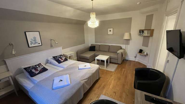 Das Hotell Strandvillan befindet sich im Zentrum von Orsa und bietet eine ruhige Lage mit Blick auf den Fluss Lillån. Die Umgebung ist geprägt von einer malerischen Landschaft, ideal für Spaziergänge und Freizeitaktivitäten.