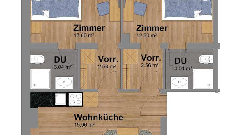Die Wohneinheiten im House 55 sind mit Parkettböden ausgestattet und verfügen über eine voll ausgestattete Küche mit Kühlschrank, Geschirrspüler, Mikrowelle sowie Kaffeemaschine und Wasserkocher. Weiterhin steht ein Essbereich, ein Flachbild-TV mit Kabelkanälen und ein eigenes Badezimmer mit Dusche und Haartrockner zur Verfügung.
