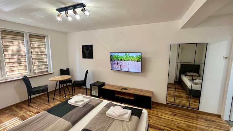 Alle Zimmer sind mit einem Kleiderschrank, einem Flachbild-TV, einem Wasserkocher und einem eigenen Badezimmer ausgestattet. Einige Zimmer verfügen über eine Küche mit Kühlschrank. Auf Wunsch sind Allergikerfreundliche Zimmer verfügbar. Bettwäsche und Handtücher werden bereitgestellt.