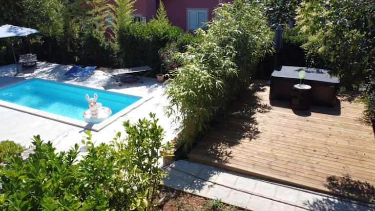 House Giovanni bietet eine ansprechende Übernachtungsmöglichkeit mit einem eigenen Garten und Blick auf diesen. Das Ferienhaus verfügt über einen eigenen Pool, eine voll ausgestattete Küche sowie eine Bar und einen Balkon, der zur Entspannung einlädt. Es ist eine klimatisierte Unterkunft.