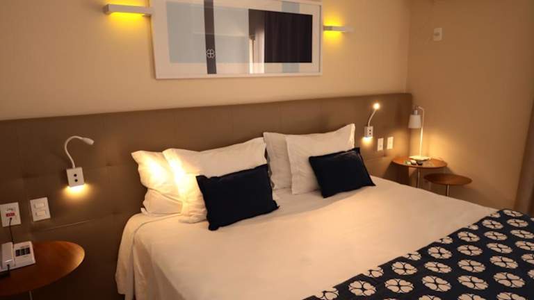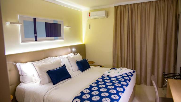 Die klimatisierten Zimmer sind ausgestattet mit einem Schreibtisch, einem Safe, einem Flachbild-TV, einem Balkon sowie einem eigenen Badezimmer mit Bidet. Alle Zimmer beinhalten Bettwäsche und Handtücher und sind ergonomisch eingerichtet für einen angenehmen Aufenthalt.
