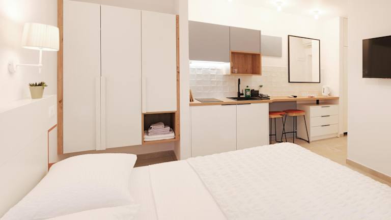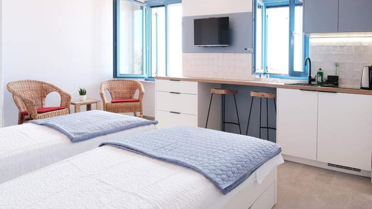 Die Unterkunft ist mit einer voll ausgestatteten Küchenzeile mit Essbereich, einem Flachbild-TV und einem eigenen Badezimmer ausgestattet. Zudem sind ein Kühlschrank, eine Herdplatte und ein Wasserkocher vorhanden.