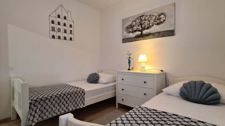 Das Ferienhaus besteht aus 2 Schlafzimmern, einem Wohnzimmer und einer voll ausgestatteten Küche mit Kühlschrank und Kaffeemaschine. Ein Badezimmer mit Dusche und Haartrockner ist ebenfalls vorhanden.