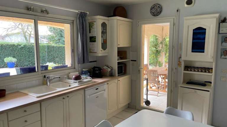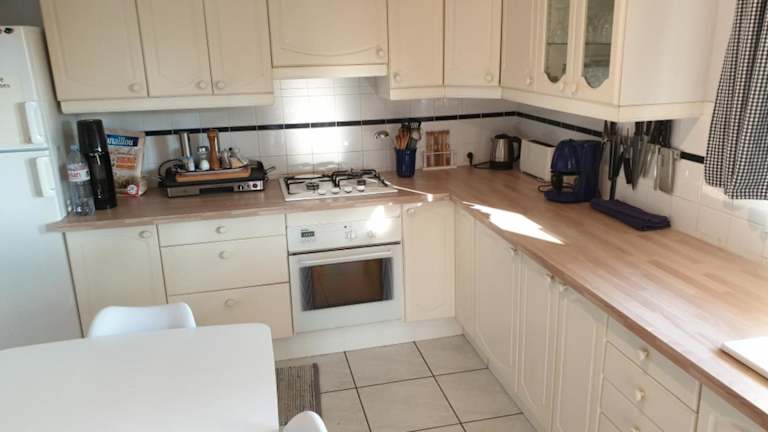 Eine gut ausgestattete Küche mit Kühlschrank, Geschirrspüler und Ofen steht zur Verfügung, um eigene Mahlzeiten zuzubereiten. Eine Verpflegung vor Ort wird nicht angeboten.