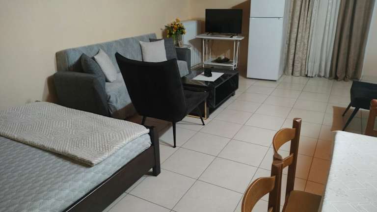 Die Ferienwohnung bietet ein Schlafzimmer, ein Wohnzimmer sowie eine voll ausgestattete Küchenzeile mit Kühlschrank und Kaffeemaschine. Ein Badezimmer mit Dusche und kostenlosen Pflegeprodukten steht ebenfalls zur Verfügung. Handtücher und Bettwäsche werden bereitgestellt. Die Unterkunft ist klimatisiert und zusätzlich gibt es eine tägliche Reinigung sowie eine 24-Stunden-Rezeption.