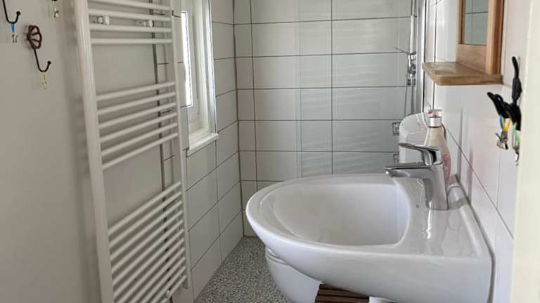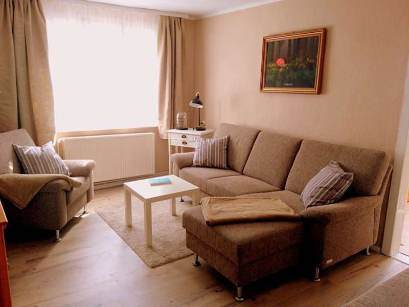 Das Ferienhaus bietet Platz in zwei Schlafzimmern und beinhaltet ein Wohnzimmer mit Flachbild-TV sowie eine gut ausgestattete Küche mit Kühlschrank und Geschirrspüler. Ein Badezimmer mit Dusche sowie eine Terrasse mit Gartenblick sind ebenfalls vorhanden. Handtücher und Bettwäsche werden bereitgestellt.