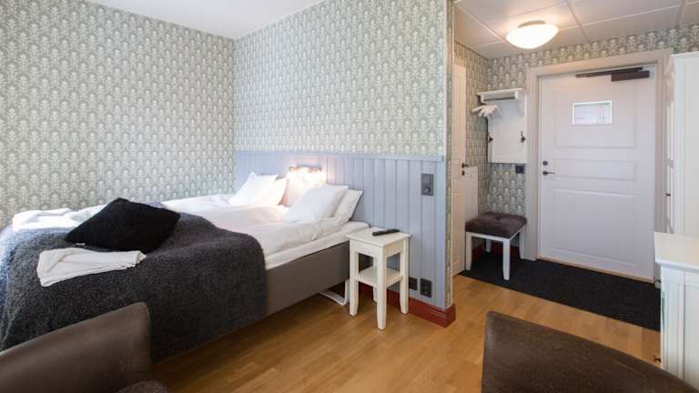 Die Zimmer im Hovde Hotell sind mit einem modernen Bad ausgestattet, das eine Dusche umfasst. Flachbild-TV, Holzböden und ein gemütlicher Sitzbereich gehören zur Standardausstattung.