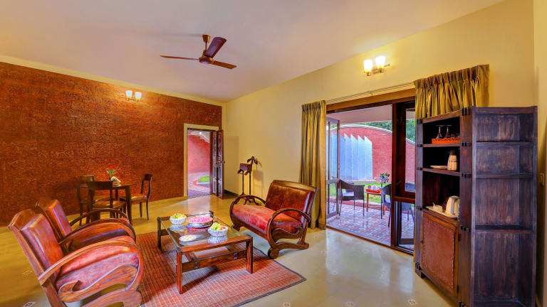 Das Hoysala Village Resort in Belūr bietet seinen Gästen einen angenehmen Aufenthalt mit einer Vielzahl von Annehmlichkeiten. Entspannen Sie am Außenpool, erkunden Sie den schönen Garten oder genießen Sie einen Drink in der Gemeinschaftslounge oder an der Bar. Das Resort bietet auch einen Kinderspielplatz und eine 24-Stunden-Rezeption. Die Zimmer sind geräumig und verfügen über einen Sitzbereich, einen Flachbild-Sat-TV und ein eigenes Bad. Einige Zimmer bieten zudem einen Balkon mit Blick auf den Garten. Das Resort verfügt über eine Klimaanlage und einen Schreibtisch in allen Zimmern. Beginnen Sie Ihren Tag mit einem köstlichen kontinentalen Frühstück und probieren Sie regionale und indische Küche im hauseigenen Restaurant. Für Aktivitäten steht Ihnen Radfahren zur Verfügung.
