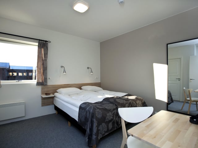 Der gastronomische Bereich umfasst ein Restaurant und eine Bar, wo Frühstück und Mittagessen täglich angeboten werden. Das Restaurant serviert traditionelle isländische Gerichte und Fast Food. Es werden zudem Diätgerichte und Kindermenüs auf Wunsch zubereitet.