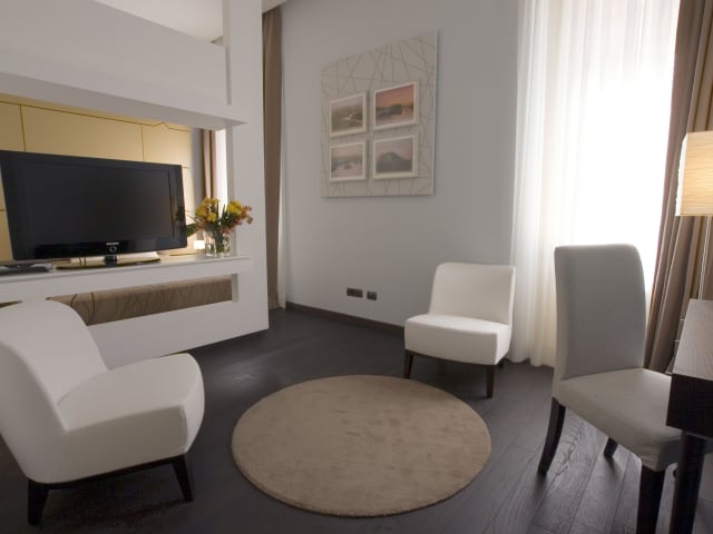 Die Zimmer im HT Romeo Al Babuino sind mit einem Doppelbett sowie einem Sofabett ausgestattet. Zustellbetten sind auf Anfrage erhältlich. Jedes Zimmer verfügt über eine Klimaanlage, Heizung, eine Minibar, einen Schreibtisch, einen Kühlschrank sowie eine Tee- und Kaffeemaschine. Zudem sind ein Haartrockner, Kosmetikartikel, ein Flachbild-TV, Radio und kostenloses Wifi vorhanden. Die Badezimmer sind mit einer Dusche und einem Bidet ausgestattet. Hausschuhe werden ebenfalls bereitgestellt.