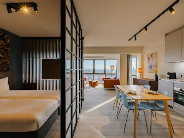 Die Htel Serviced Apartments Amstelveen bieten eine Vielzahl von Services und Annehmlichkeiten. Sie verfügen über 250 moderne und voll möblierte Apartments, die zwischen 45 und 90 m² gross sind und mit einer komplett ausgestatteten Küche ausgestattet sind. Zudem stehen ein Wellnessbereich mit Türkischem Bad, Sauna und Jetstream-Pool zur Verfügung. Ein Fitnesscenter sowie kostenfreies WLAN und Privatparkiermöglichkeiten sind ebenfalls vorhanden. Eine 24-Stunden-Rezeption und ein wöchentlicher Reinigungsservice sorgen für zusätzlichen Komfort. Bitte beachten Sie, dass Renovierungsarbeiten in einem Gebäudeteil stattfinden, wodurch es während der Woche zu Lärmbelästigungen kommen kann.