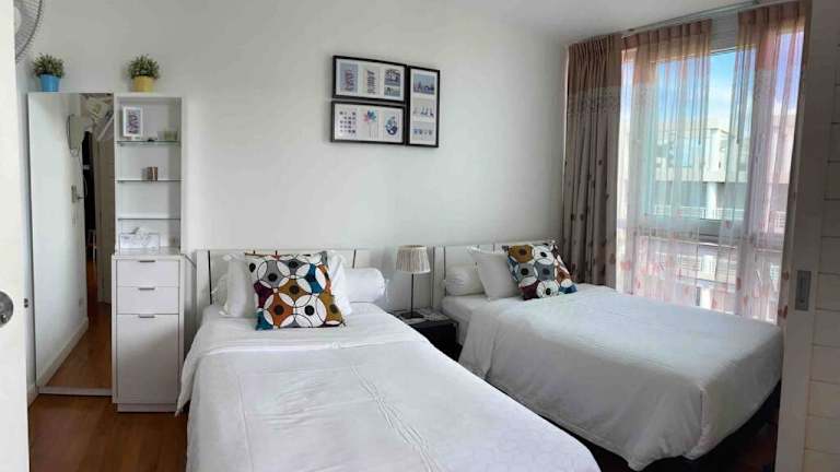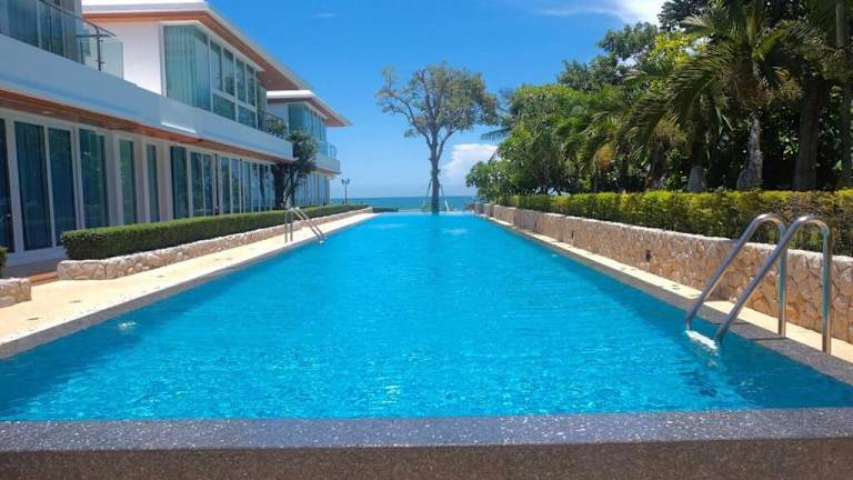 Hua Hin Bliss Seaside 2 Bedrooms bietet Übernachtungsmöglichkeiten direkt am Strand mit kostenlosem Wifi, einem Klimaanlage sowie einem Aussenpool und eigenem Strandbereich. Diese Ferienwohnung ist ideal für Familien oder Gruppen und wird von einem privaten Gastgeber geführt.