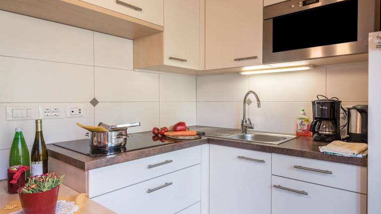 Die Ferienwohnung besteht aus 1 Schlafzimmer, einem Wohnzimmer und einer voll ausgestatteten Küche mit Kühlschrank und Kaffeemaschine. Zudem gibt es 1 Badezimmer mit Dusche und kostenlosen Pflegeprodukten. Handtücher und Bettwäsche werden zur Verfügung gestellt. Ein Kinderspielplatz ist ebenfalls vorhanden.