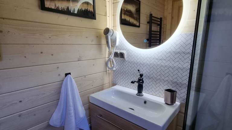 Die Wohneinheiten verfügen über eine Terrasse mit Bergblick und sind ausgestattet mit einer Küchenzeile, welche Kühlschrank, Geschirrspüler und Herdplatte enthält. Zudem gibt es ein eigenes Badezimmer mit Dusche sowie einen Wasserkocher.