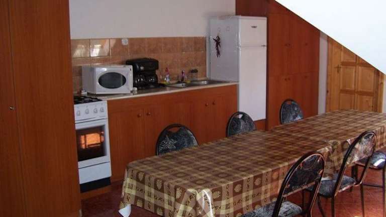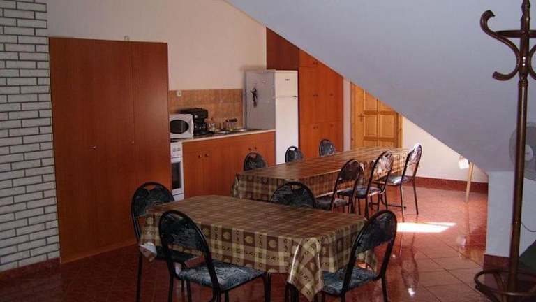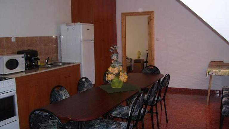 Neben der Selbstversorgungsmöglichkeit in der Gemeinschaftsküche bietet das Hubertus Vendégház auch die Option, ein Frühstück oder Abendessen auf Anfrage zu erhalten. Genießen Sie köstliche Mahlzeiten, ohne sich um die Zubereitung kümmern zu müssen.