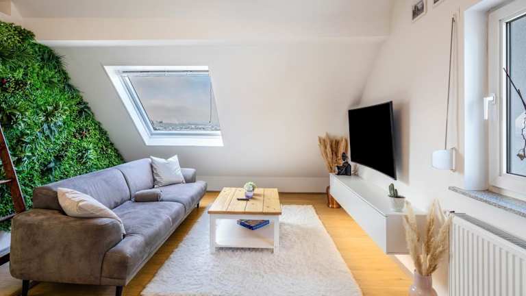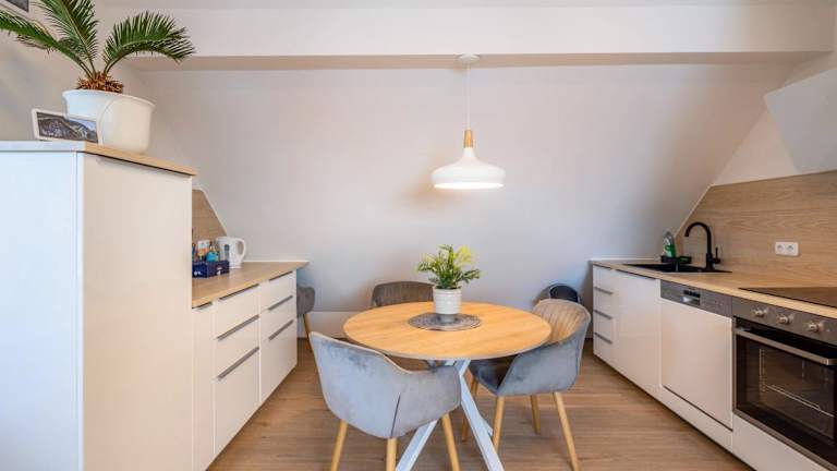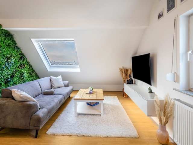 Die Ferienwohnung umfasst eine gut ausgestattete Küche mit Kühlschrank, Geschirrspüler und Ofen. Ein Badezimmer mit Dusche und kostenlosen Pflegeprodukten ist ebenfalls vorhanden. Kabel-TV ist im Angebot enthalten, ebenso ein schöner Stadtblick, der die Unterkunft zusätzlich bereichert.