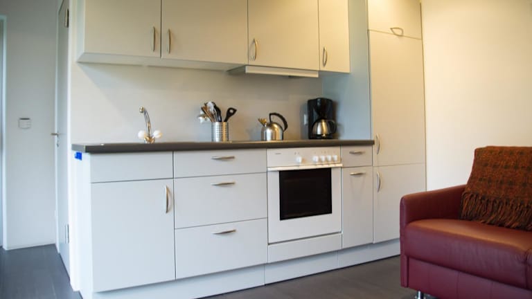 Die Ferienwohnung verfügt über ein Schlafzimmer, ein Badezimmer sowie eine voll ausgestattete Küche. Zu den weiteren Annehmlichkeiten zählen Bettwäsche, Handtücher, ein Flachbild-TV mit Satellitenkanälen und ein Essbereich. Eine Terrasse mit Stadtblick rundet das Angebot ab.