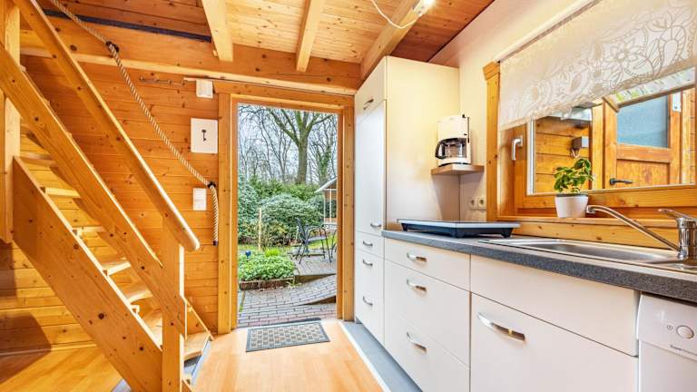 Das Ferienhaus besteht aus einem Schlafzimmer, einem Wohnzimmer, einer voll ausgestatteten Küche mit Kühlschrank und Kaffeemaschine sowie einem Badezimmer mit Dusche und kostenlosen Pflegeprodukten. Handtücher und Bettwäsche werden bereitgestellt. Die Unterkunft bietet zudem Gartenmöbel und Heizung.