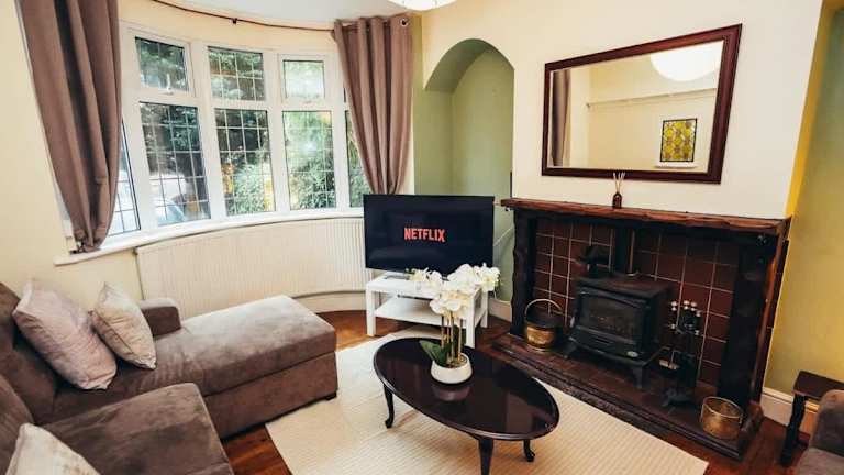 Das 4BR Family Home, Self Check In, Parking, By DerBnB bietet eine helle und einladende Atmosphäre mit einem schönen Garten und Blick auf die Umgebung. Die Unterkunft ist ideal für Familien gestaltet und ermöglicht einen unkomplizierten Self Check-in.