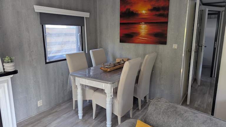 Das Chalet verfügt über zwei Schlafzimmer, ein Wohnzimmer mit Flachbild-TV, eine gut ausgestattete Küche mit Kühlschrank und Herdplatte sowie ein Badezimmer mit Dusche. Für zusätzlichen Komfort können Bettwäsche und Handtücher gegen Aufpreis bereitgestellt werden.